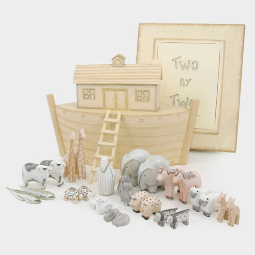 Large Natural Hand Carved Noah's Ark Set Christening Baby Gift By East of India