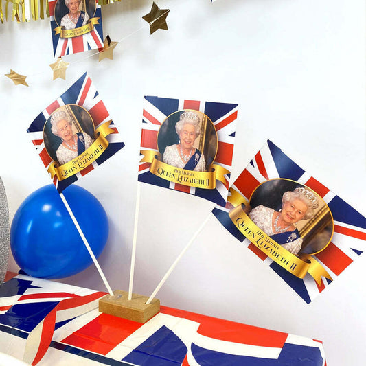The Queen's Platinum Jubilee Union Jack Table Decoration Street Party Hand Flag