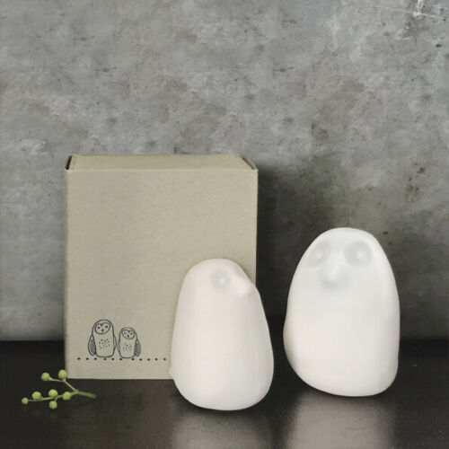 Two Little Owls White Porcelain Ornament Figure Vintage Style Boxed Xmas Gift