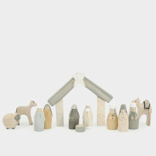 Hand Carved Natural Wooden Nativity Boxed Set/Scene East of India Xmas New