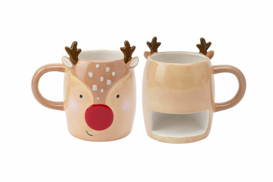 Novelty Reindeer or Santa Snack Mug Biscuit Pocket Holder Coffee Tea Xmas Gift